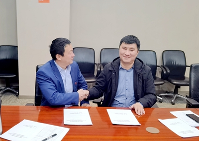 北油工程公司副總經理劉戈與河南中匯電子新材料股份有限公司董事長李月朝共同簽署戰略合作協議書,此協議標志著我公司與河南中匯電子新材料股份有限公司合作協議項目正式進入實施階段。