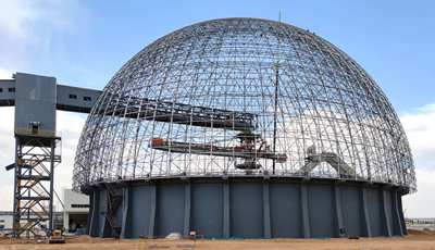 圓形煤場為全封閉半球形結構,建筑面積約5800平米,可堆放燃煤4萬噸燃煤,滿足全廠儲煤要求,是全廠最大的鋼網結構建筑。