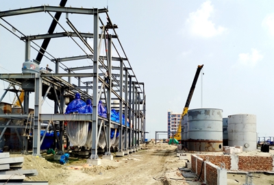 為完成全年任務(wù)目標,由公司總承包的孟加拉甲醛項目組全力沖擊四季度建設(shè)進度。目前,項目總體已完成88%,其中鐵鉬法及銀法甲醛裝置完成全部設(shè)備的安裝,配管完成65%;鍋爐房、空氮站、循環(huán)水場、儲罐區(qū)完成全部設(shè)備及管道安裝,目前正在進行電儀安裝;原水泵站、電玉粉4線及6線、汽車裝卸設(shè)施上部結(jié)構(gòu)完成75%;全廠地管完成回填工作。項目的快速推進得到業(yè)主肯定。