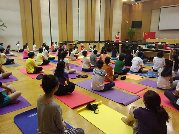 公司工會(huì)組織的瑜伽課成為最受歡迎的課程,場場爆滿