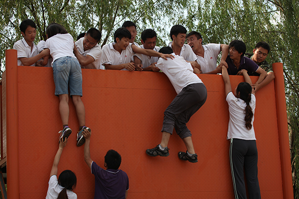 翻越逃生墻。我們的口號(hào)是“不能讓一個(gè)人掉隊(duì)”