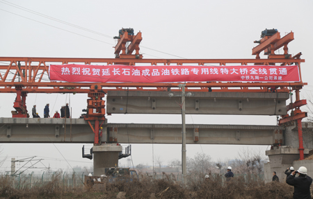 延長(zhǎng)石油西安成品油鐵路專(zhuān)用線(xiàn)特大橋全線(xiàn)貫通